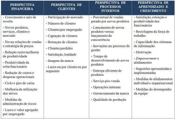 - Perspectiva de aprendizado e crescimento: corresponde à capacidade que a empresa possui para manter seu capital intelectual com elevado grau de motivação, satisfação interna e produtividade.