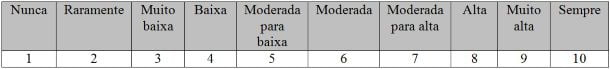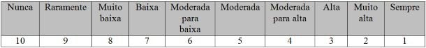 Geralmente, utiliza-se a escala de 1 a 10 para hierarquizar os itens analisados pelo FMEA.
