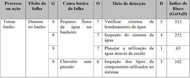 - Gravidade do efeito (G): probabilidade em que o cliente identifica e é prejudicado pela falha;