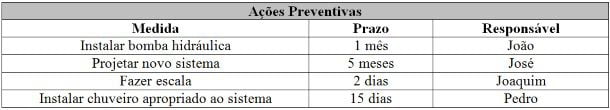 Após o preenchimento do formulário, busca-se a ação preventiva a ser adotada, o prazo e o responsável.