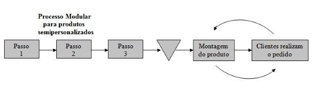 Outra abordagem que tenta combinar eficiência do processo com algum grau de padronização é a ?modularização?, onde o produto final é definido de maneira que possa ser montado a partir de inúmeros componentes individuais padronizados. O conceito de modularização é muito utilizado por indústrias de computadores. Por exemplo, vamos supor que uma fábrica de computadores produza quatro tipos diferentes de processadores, três tipos diferentes de dispositivos de entrada/saída e dois tipos de impressoras. A partir da perspectiva do cliente, esta empresa oferece 24 configurações diferentes de computador (4 x 3 x 2), embora a empresa fabrique apenas nove itens padronizados (4 + 3 + 2). A modularização também é aplicada ao setor de serviços. Por exemplo, um restaurante pode oferecer aos seus clientes 60 tipos diferentes de pratos, a partir da combinação de 4 tipos de massa, 3 tipos de molho e 5 tipos de carne (4 x 3 x 5).