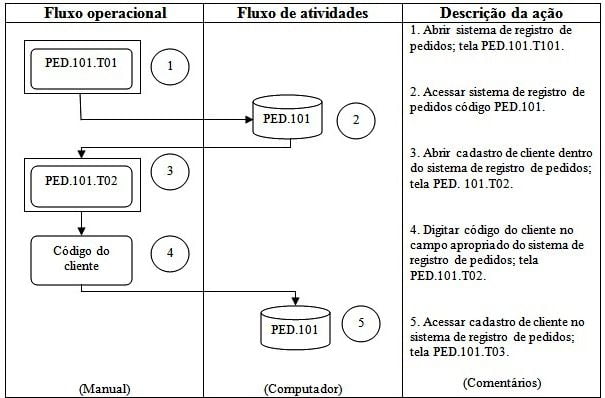 – A primeira, à esquerda, detalha o fluxo operacional que descreve as tarefas executadas manualmente.