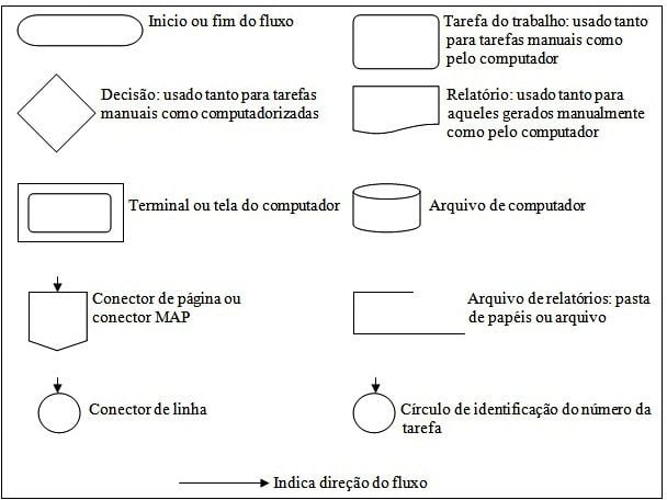 Da mesma forma que o mapa do processos (MAP), o DR utiliza símbolos padronizados que são encontrados em qualquer tipo de software.