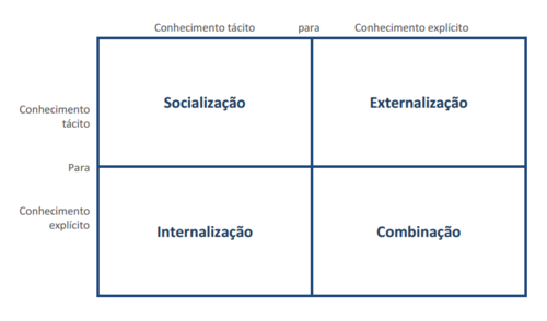 O processo é definido de forma brilhante por Nonaka e Takeuchi em 4 tipos distintos de conversão de conhecimento, como apresentado no Quadro 1 e explicados na sequência: