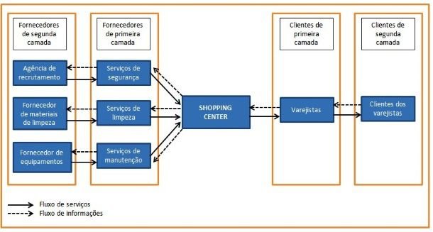 Não são somente os fabricantes que fazem parte de uma rede de suprimentos. As operações de serviços também têm fornecedores e clientes, conforme mostra a figura abaixo.